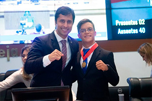 Concede a Medalha do Mérito Legislativo José Ribamar de Oliveira “Canhoteiro” a Davi Hermes Souza de Oliveira.